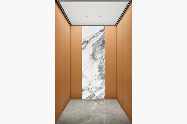 Yan ve arka duvar: şampanya altın rengi kumlanmış ahşap damarlı kozmetik çelik levha