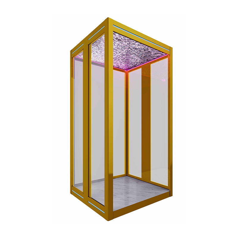 Kabin kılavuz rayının tasarımı da asansörün düzgün çalışmasında önemli bir rol oynar. Panoramik camlı villa asansöründe kabin kılavuz rayları kabinin her iki yanında bulunmaktadır. Sadece araca sabit destek sağlamakla kalmaz, aynı zamanda arabanın dikey yönde hassas hareketini de sağlarlar. Kılavuz rayın yüzeyi hassas bir şekilde işlenir ve yağlanır, bu da kabin ile kılavuz ray arasındaki sürtünmeyi azaltır ve gürültüyü daha da azaltır. Aynı zamanda, kılavuz rayın kuvvet dağılımı makuldür, böylece asansör yüksek hızda çalışırken bile sabit kalabilir ve kullanıcılara daha güvenli ve daha konforlu bir sürüş deneyimi sunar.